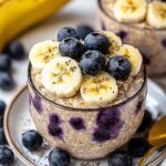 Diese Overnight Oats mit Banane und Blaubeeren sind ein schnelles, nahrhaftes Frühstück, das über Nacht im Kühlschrank zieht. Einfach zubereiten, am nächsten Morgen genießen und nach Belieben garnieren!