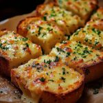 - Anrichten: Serviere das Käse-Knoblauch-Brot am besten warm. Du kannst es entweder ganz auf den Tisch stellen oder in Stücke schneiden.